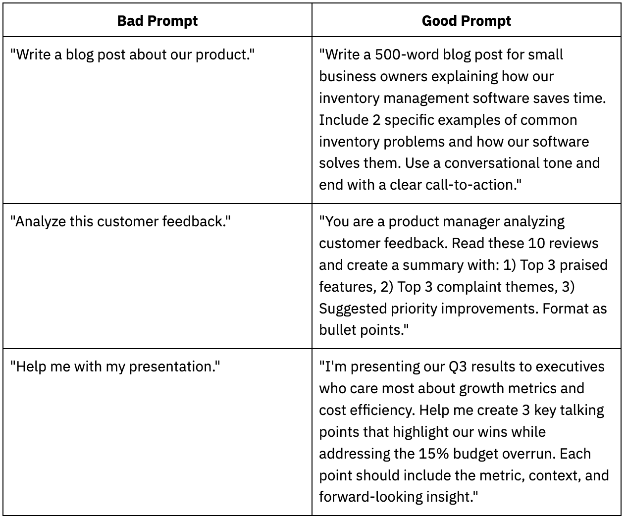 Set clear limits on length, format, or information sources. This prevents the AI from rambling or hallucinating.