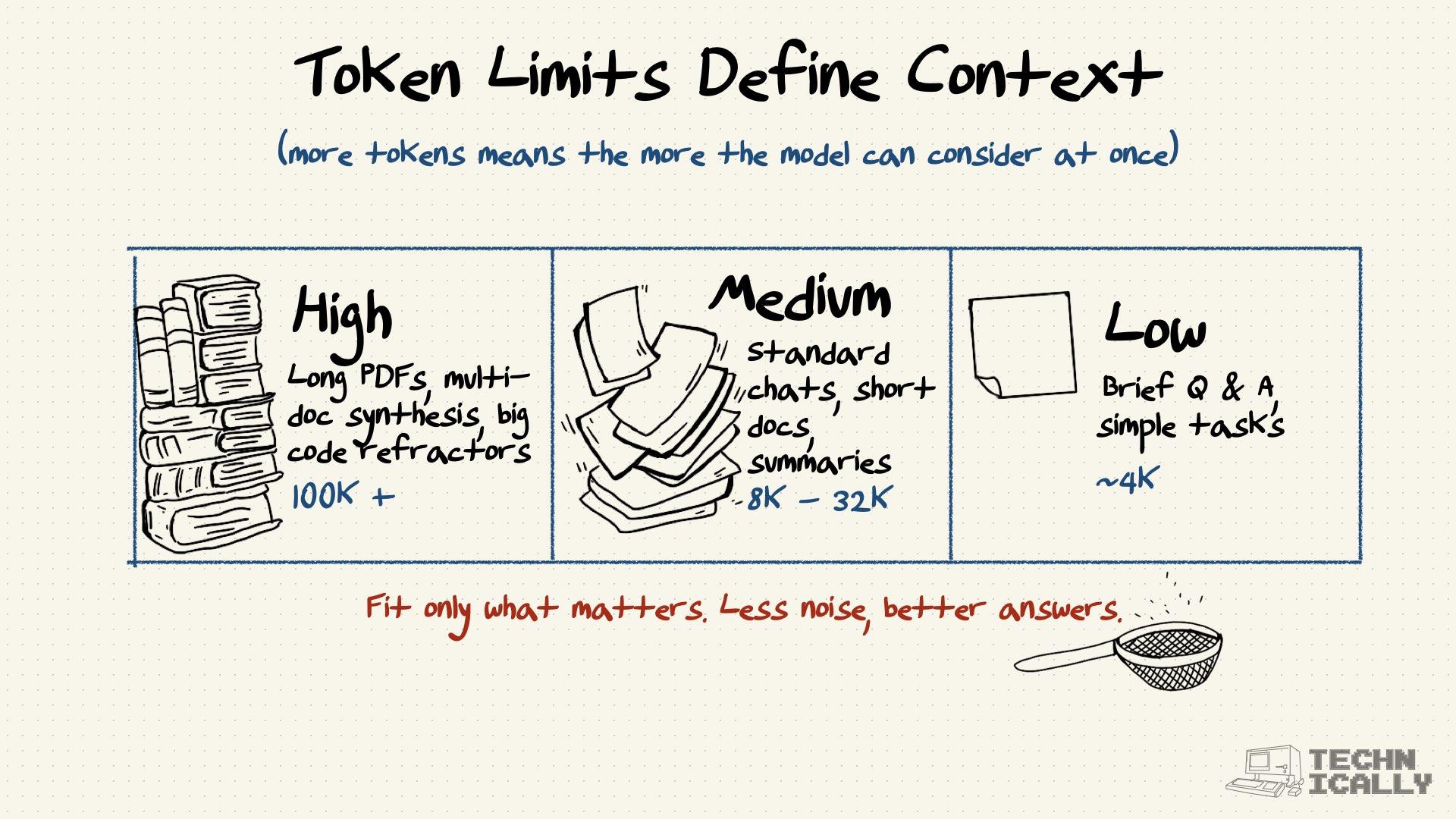 Token limits are determined by the AI model's architecture and the computational resources available: